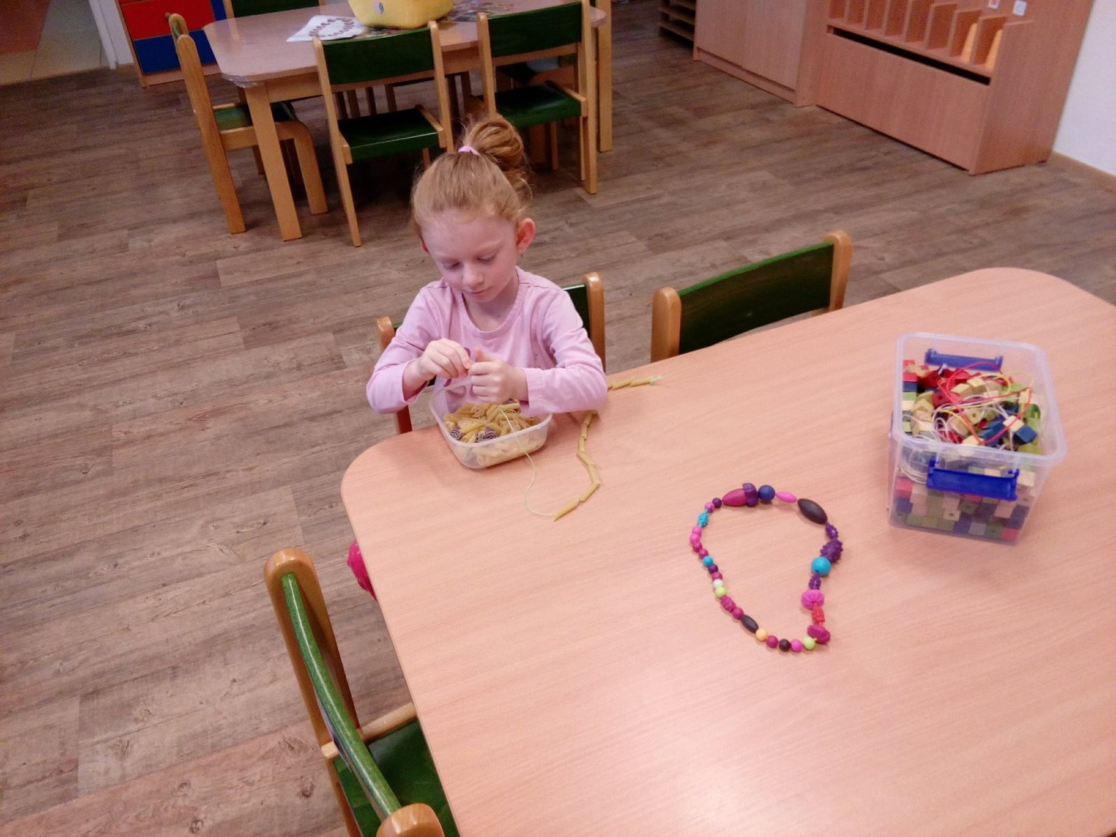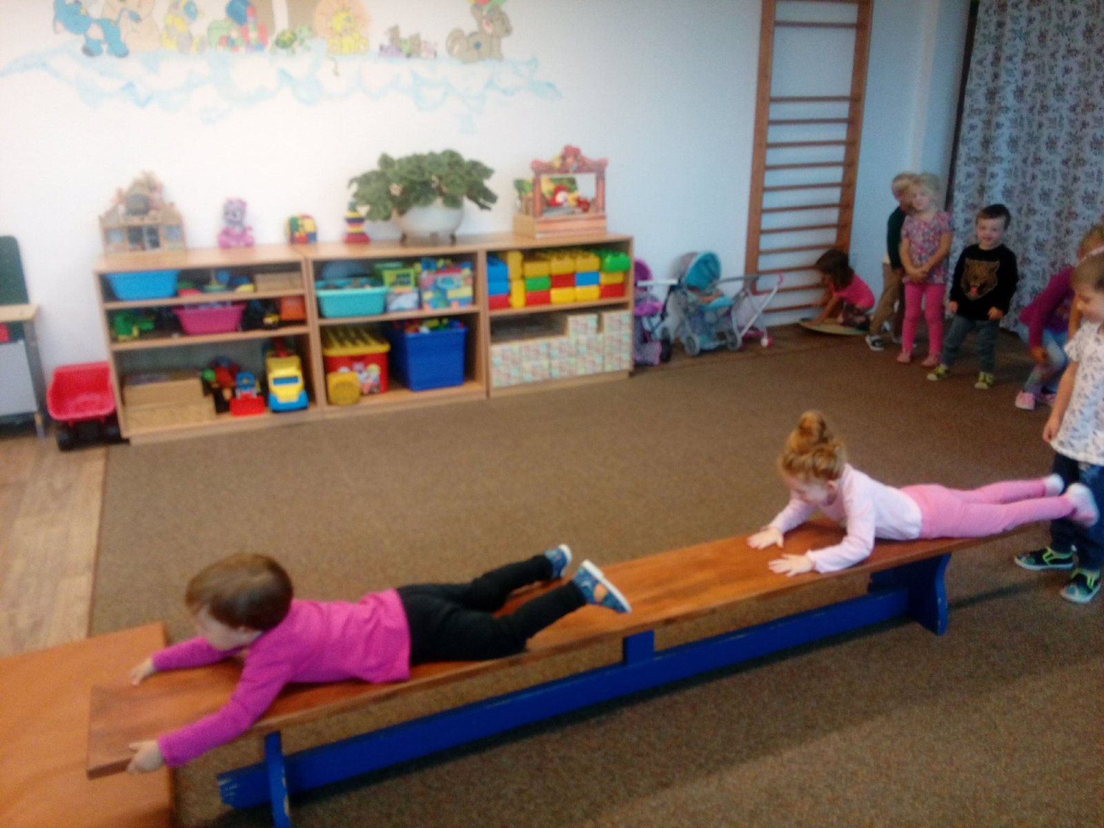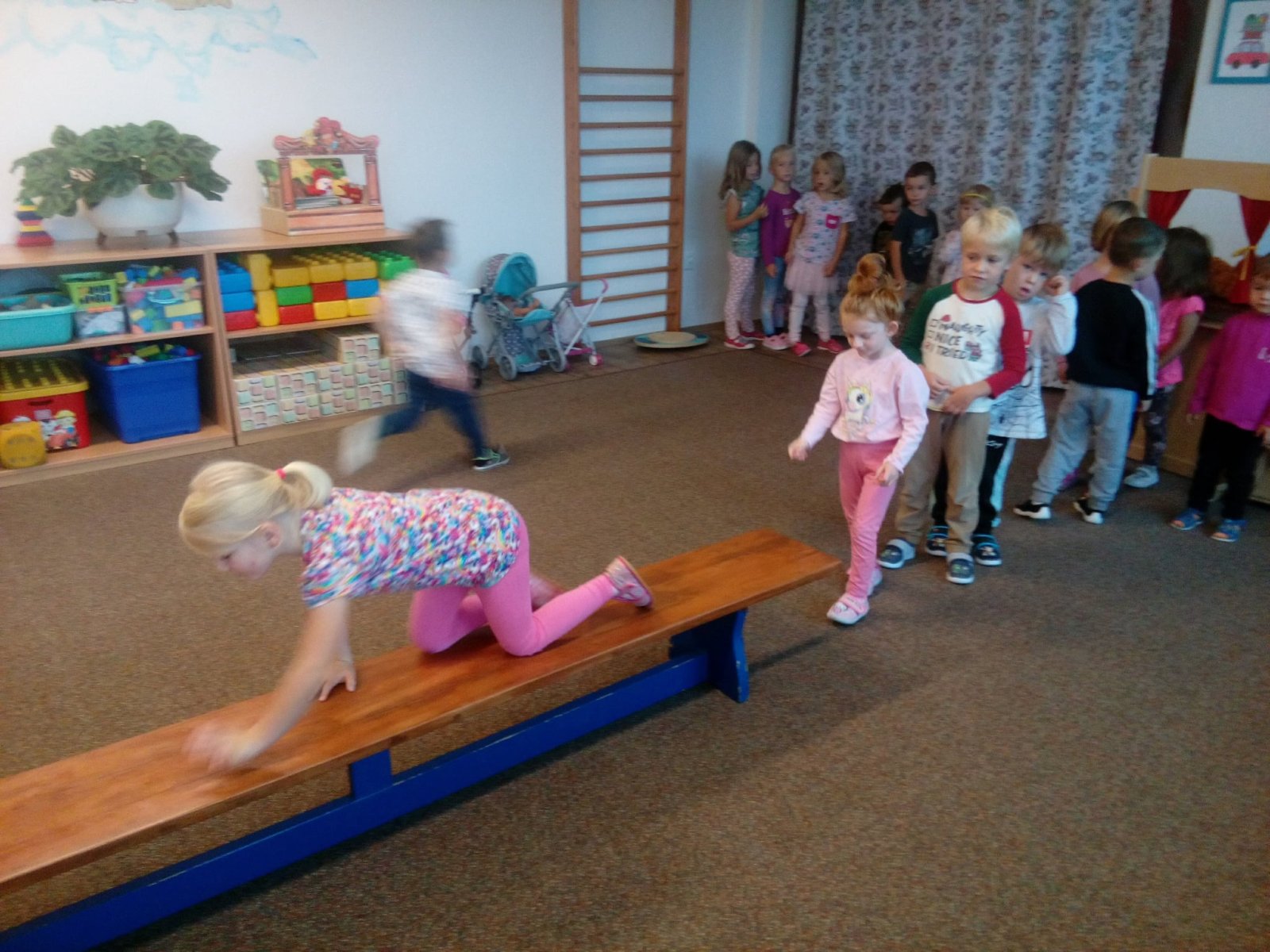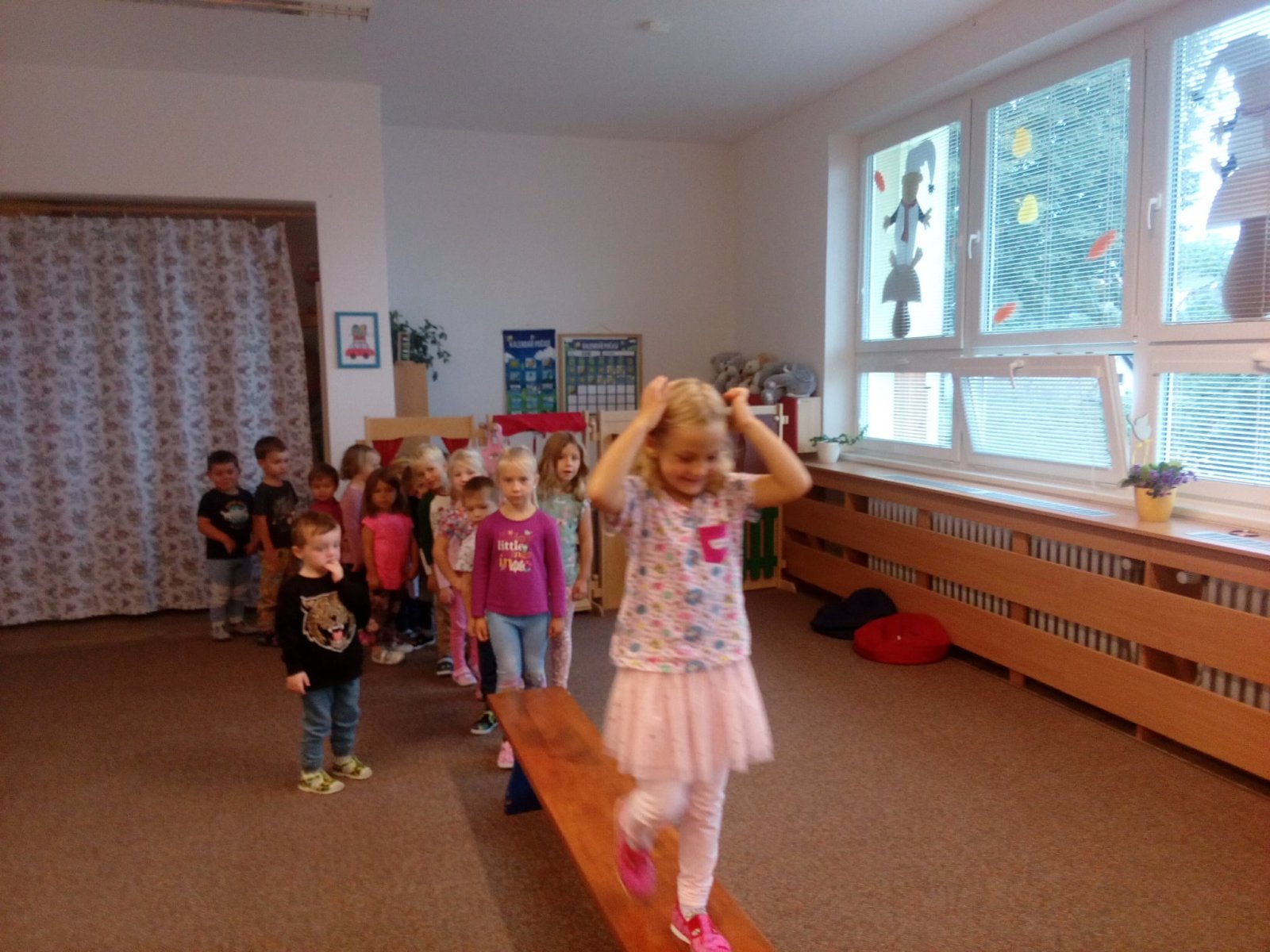 Učíme se a opakujeme školková pravidla, „kouzelná slovíčka“ prosím a děkuji, pěkně pozdravit, a také máme spoustu práce, než si všichni správně oblékneme všechny ty ponožky, trička, mikiny a bundičky – ještě, že si všichni společně pomáháme.