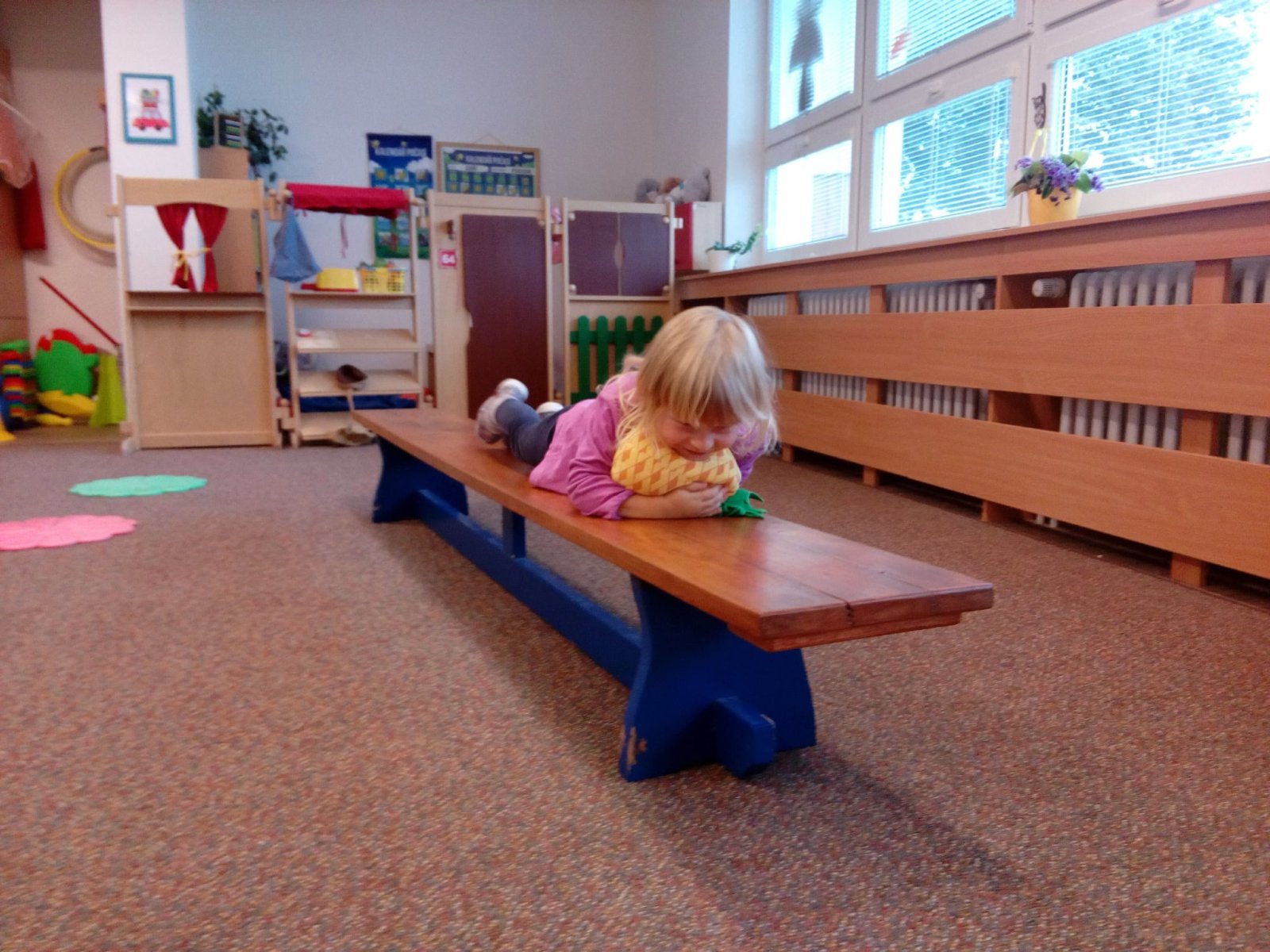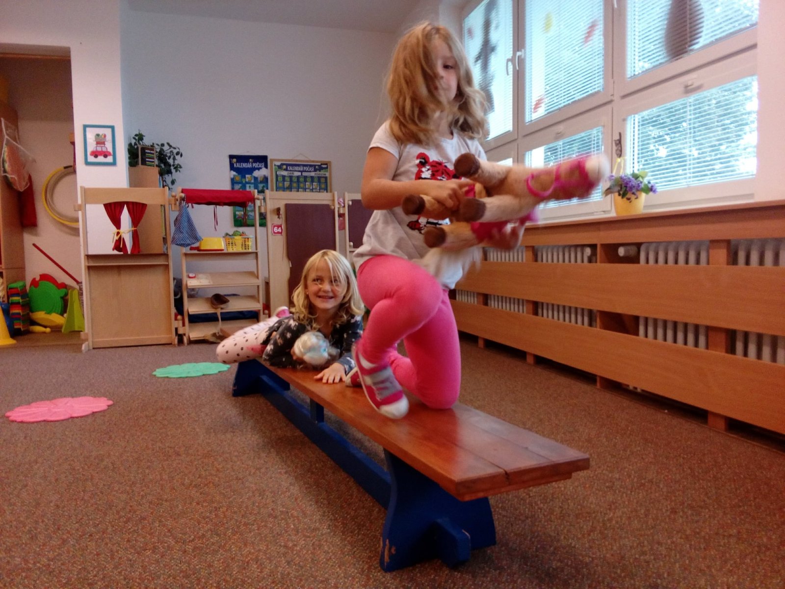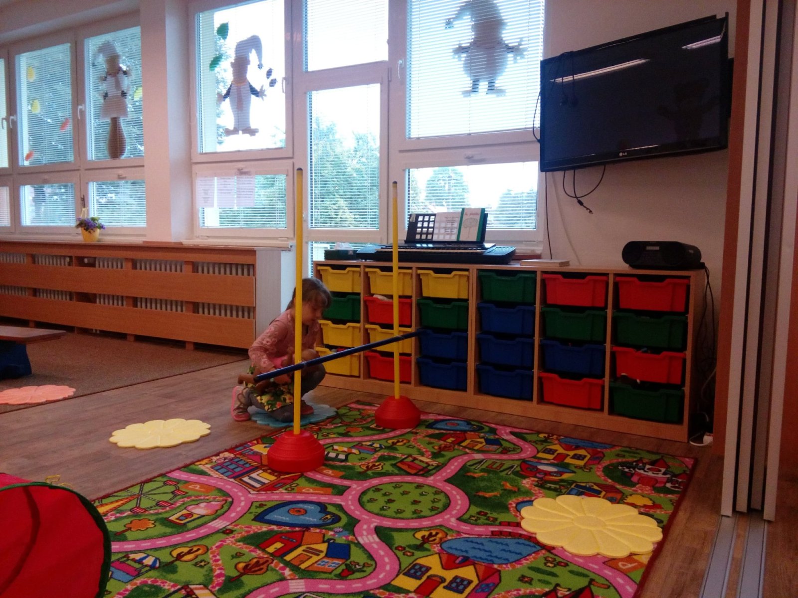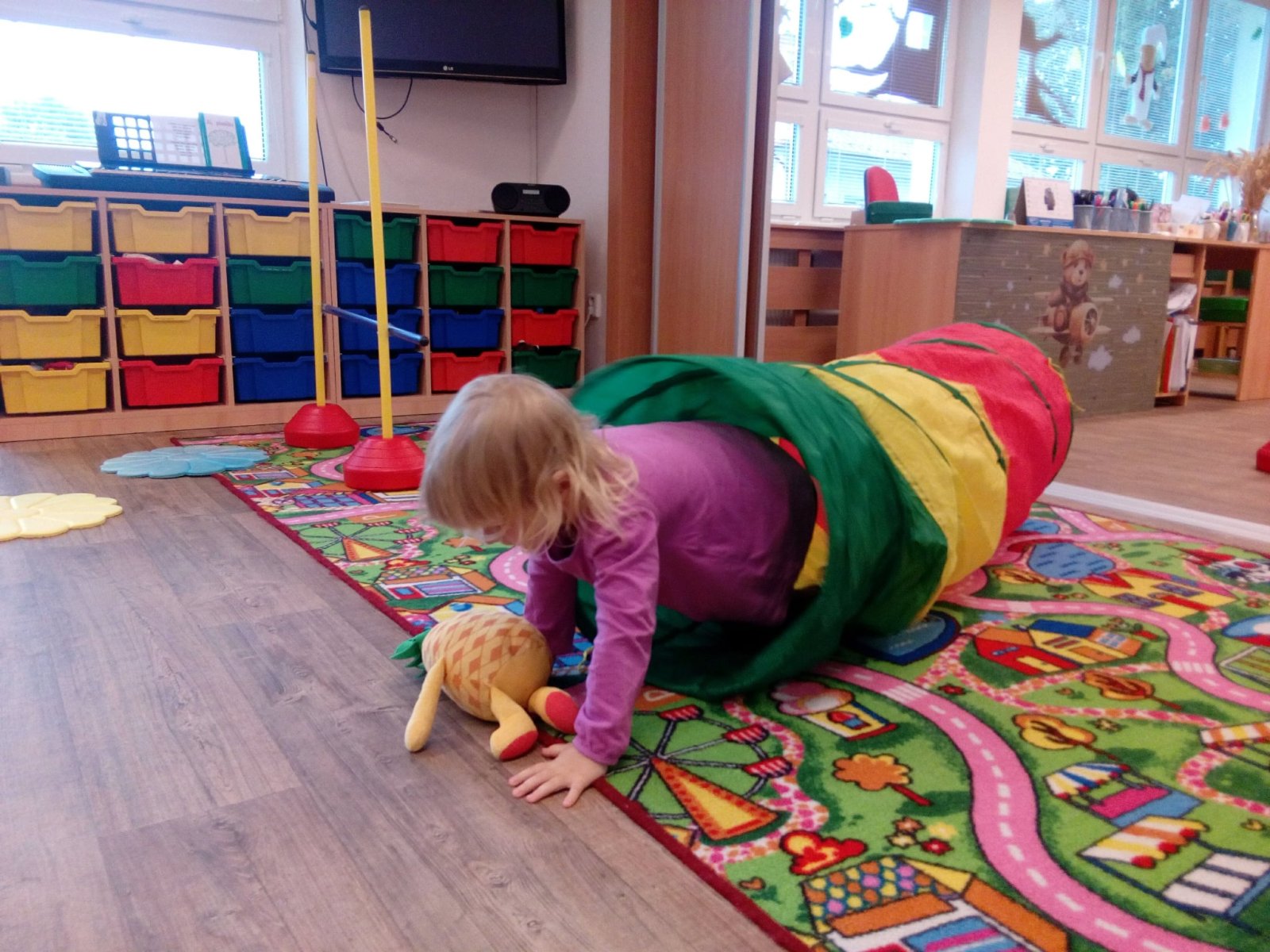 Hračky jsme si vzájemně představovali a půjčovali kamarádům, cvičili s nimi, prolézali s námi překážkovou dráhu, pohoupali se a zařádili jsme si s padákem. Věříme, že si to všichni náramně užili.