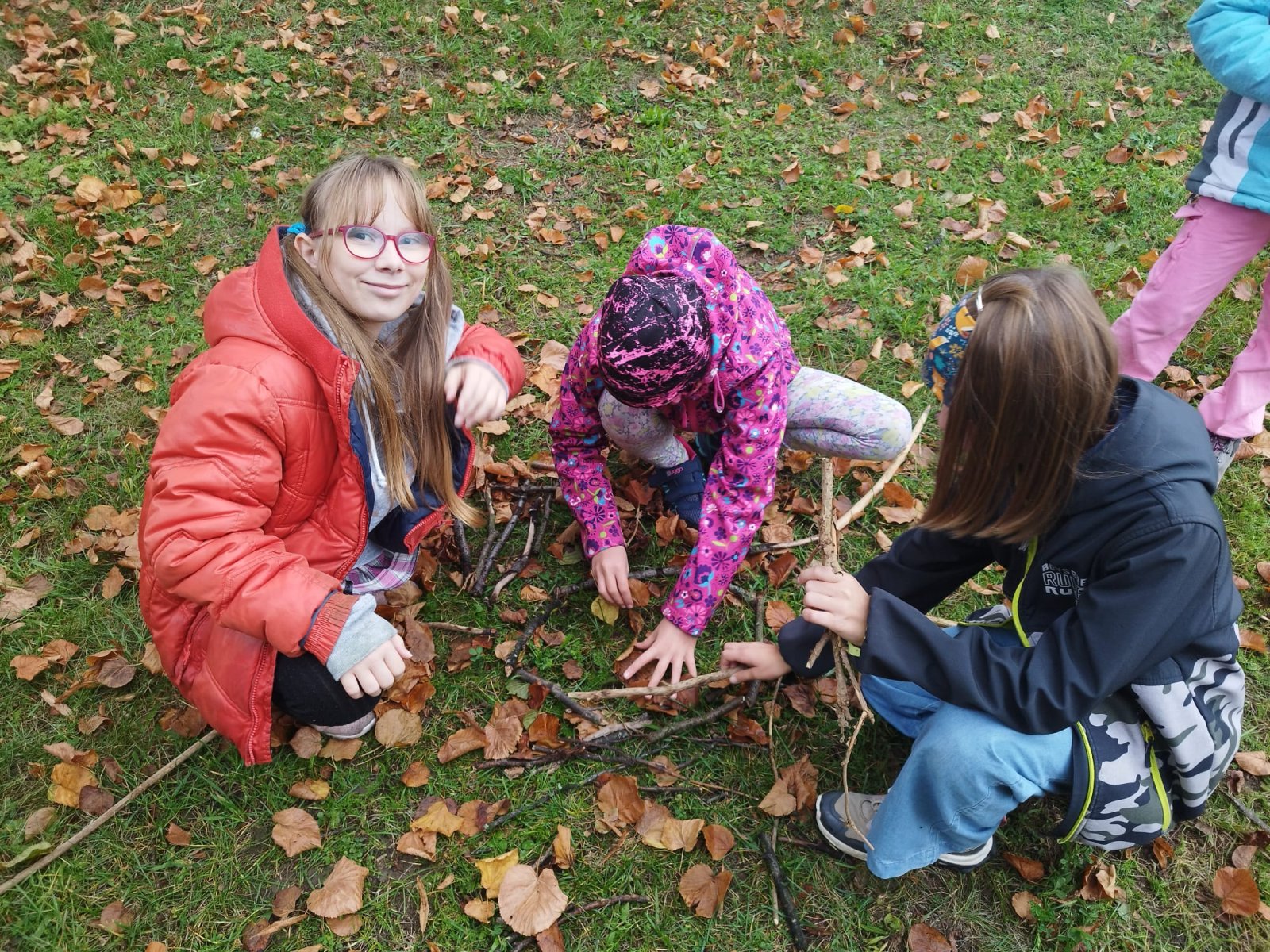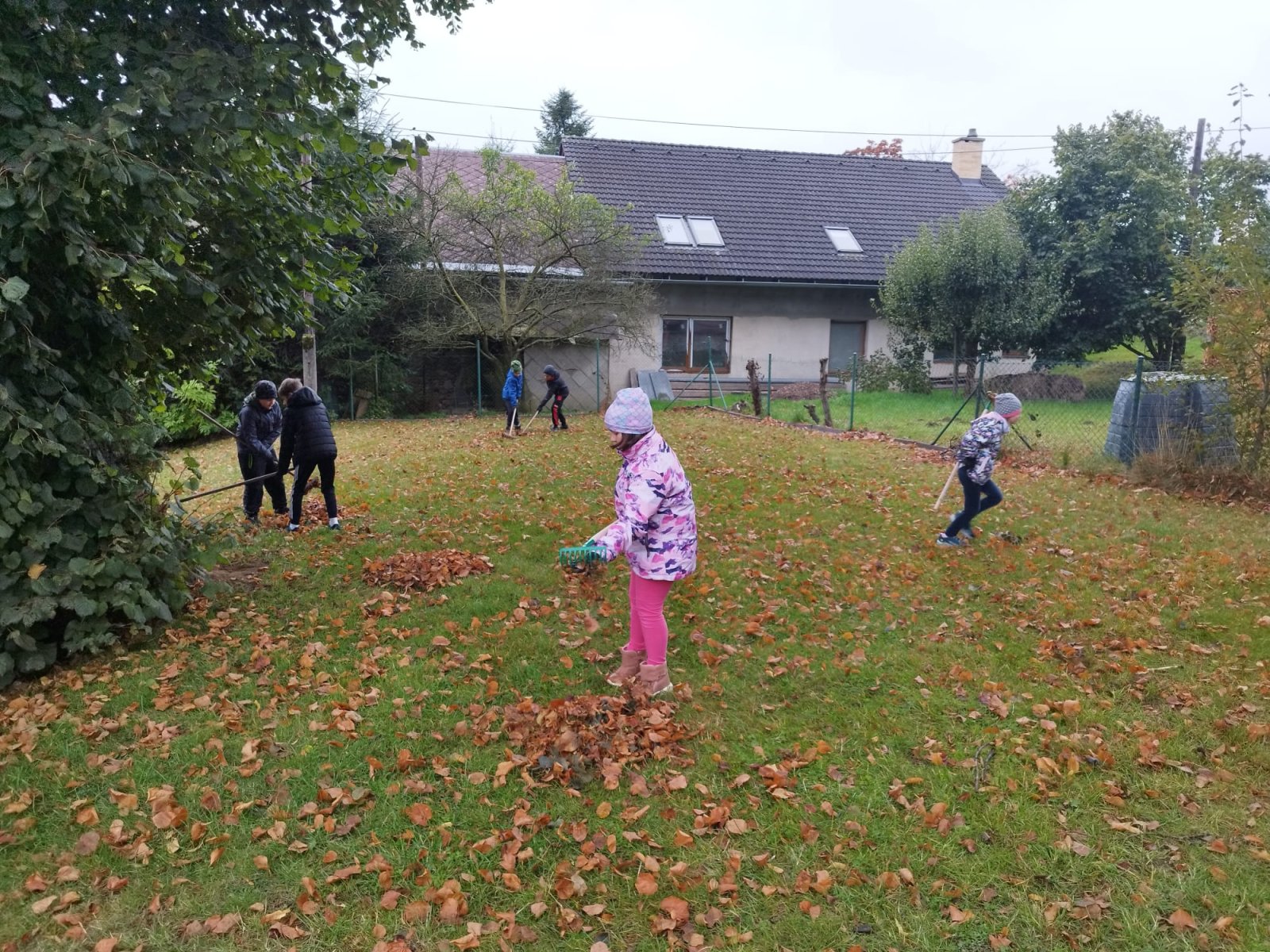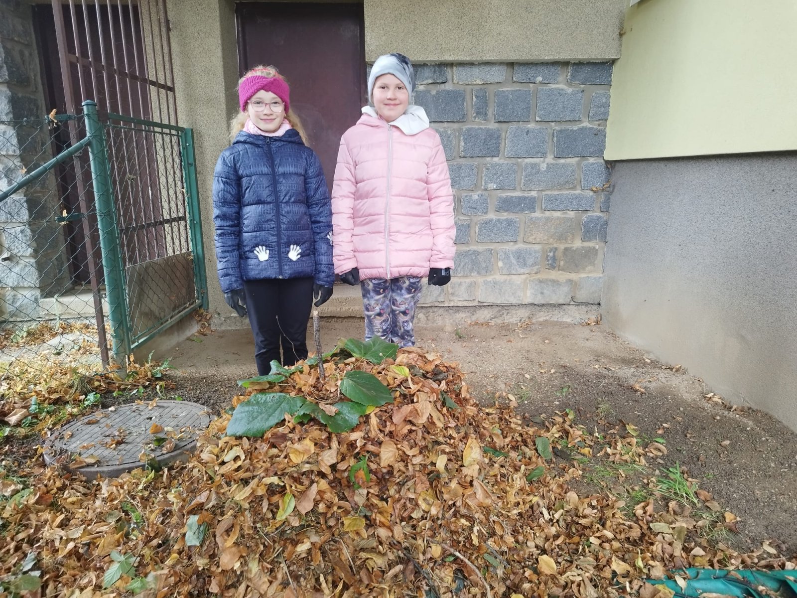 Ve škole jsme s dětmi využili pěkného počasí a v rámci výuky praktických činností se pustili do hrabání listí na zahradě. Nechybělo také společné tvoření z přírodnin technikou land art.