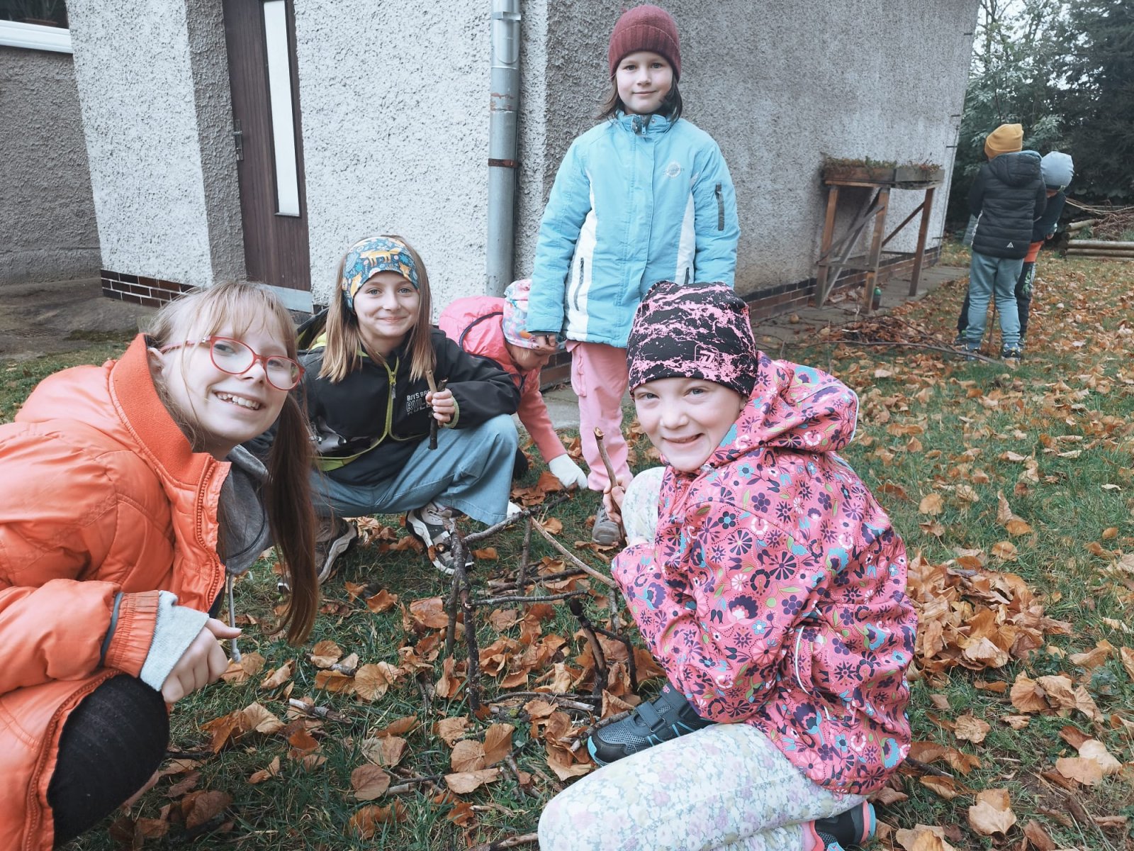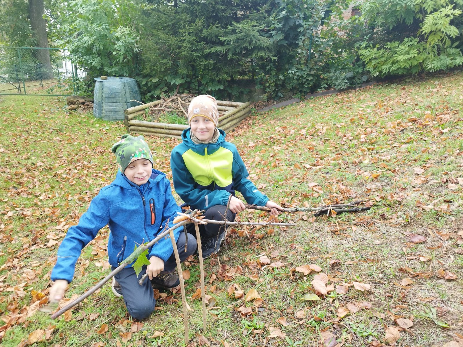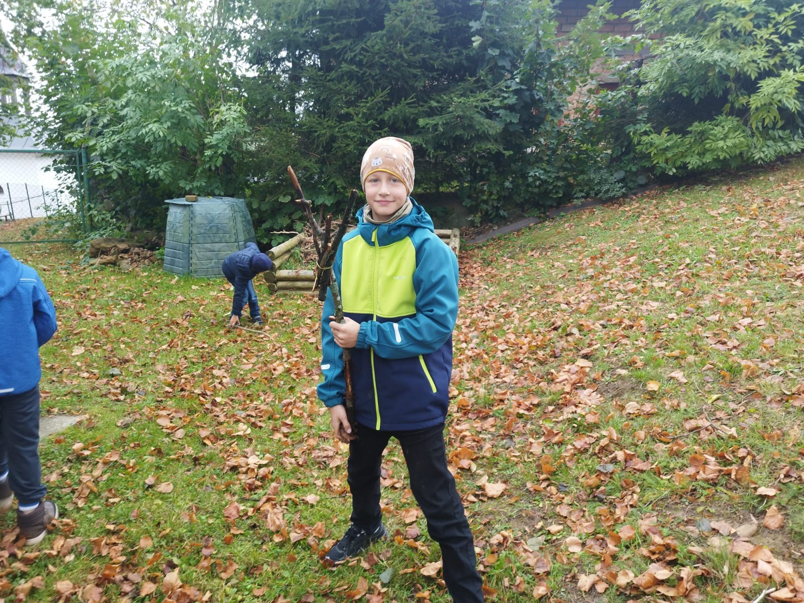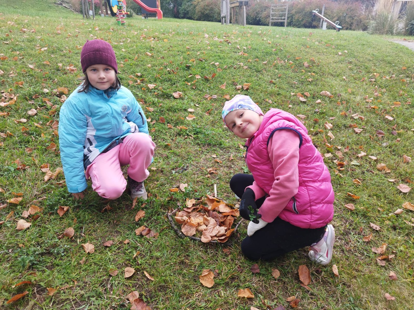 Ve škole jsme s dětmi využili pěkného počasí a v rámci výuky praktických činností se pustili do hrabání listí na zahradě. Nechybělo také společné tvoření z přírodnin technikou land art.