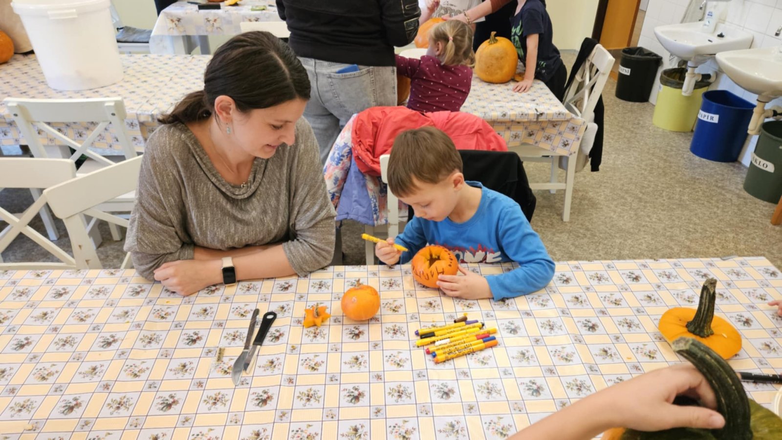 Naše škola uspořádala podzimní tvořivé odpoledne pro děti a jejich rodiče. Společně jsme si užili příjemný čas při dlabání a zdobení dýní, které navodilo pravou podzimní atmosféru. Děti s nadšením tvořily, rodiče jim pomáhali a všichni společně si odnesli nejen krásné dýňové výtvory, ale i spoustu hezkých zážitků. Děkujeme všem, kteří se do akce zapojili.