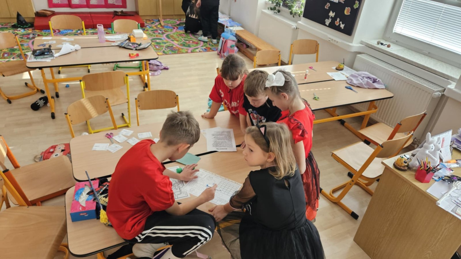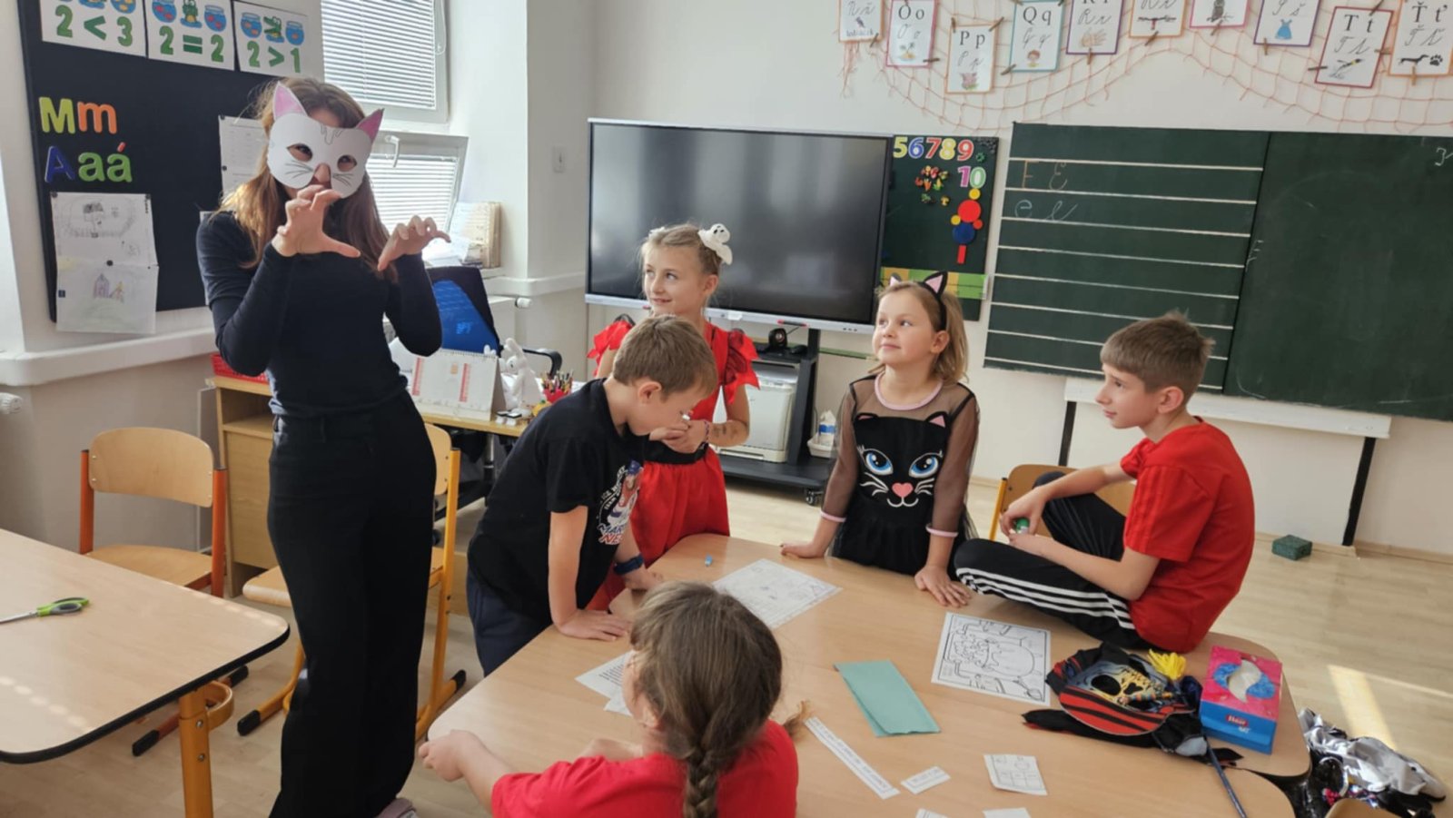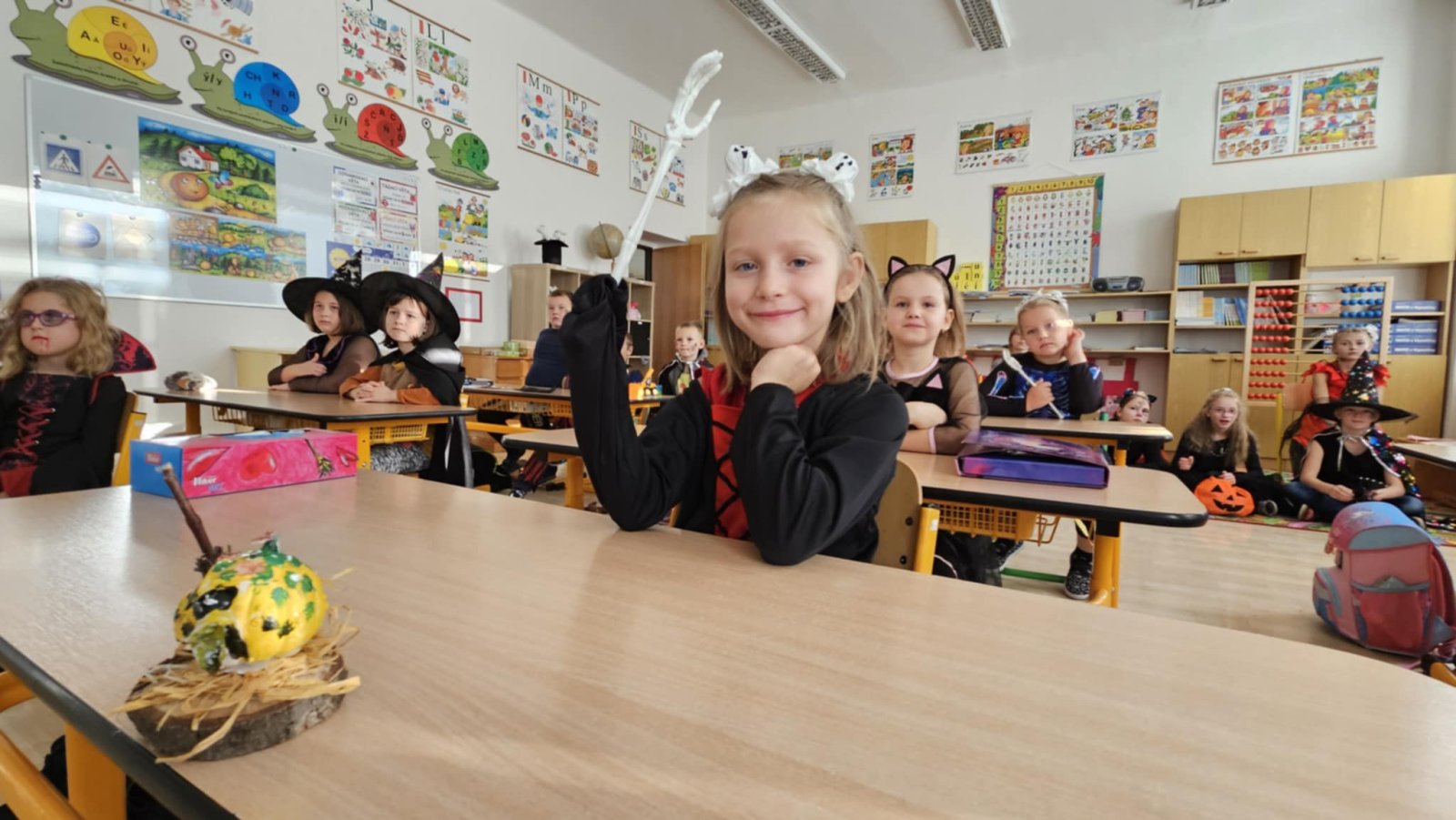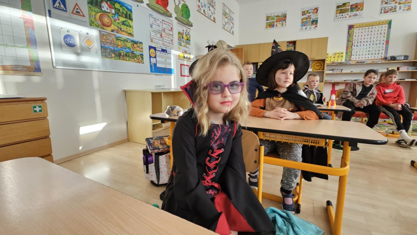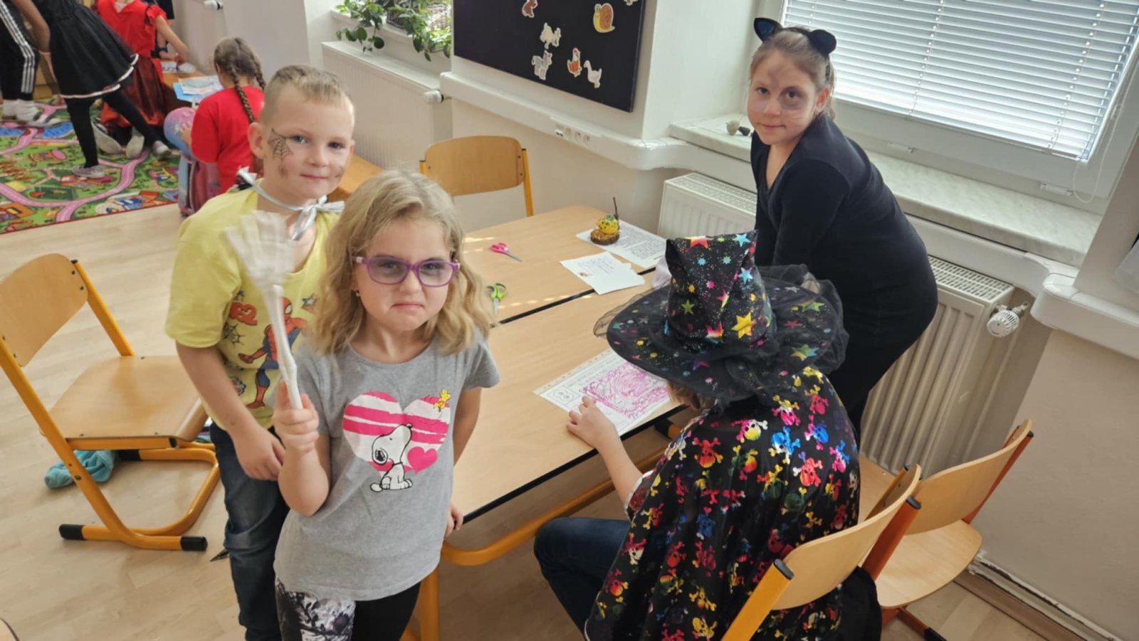 Žáci 1.–5. tříd si užili strašidelně zábavné dopoledne! Do školy přišli v nejrůznějších maskách, dozvěděli se o původu a tradicích Dušiček i Halloweenu a poté se pustili do kouzelné hry. Zlá čarodějnice Morgana začarovala paní učitelku do kočky, ale děti vše zvládly a paní učitelku nakonec úspěšně odčarovaly!