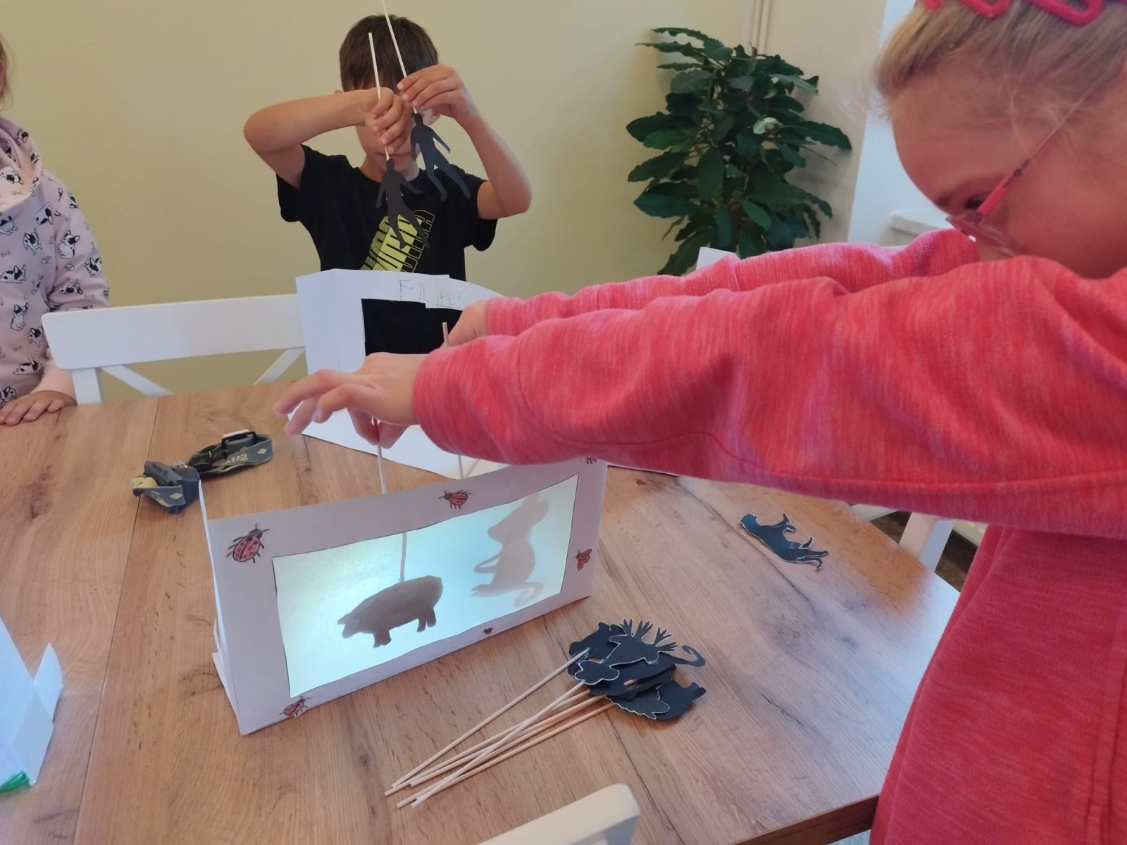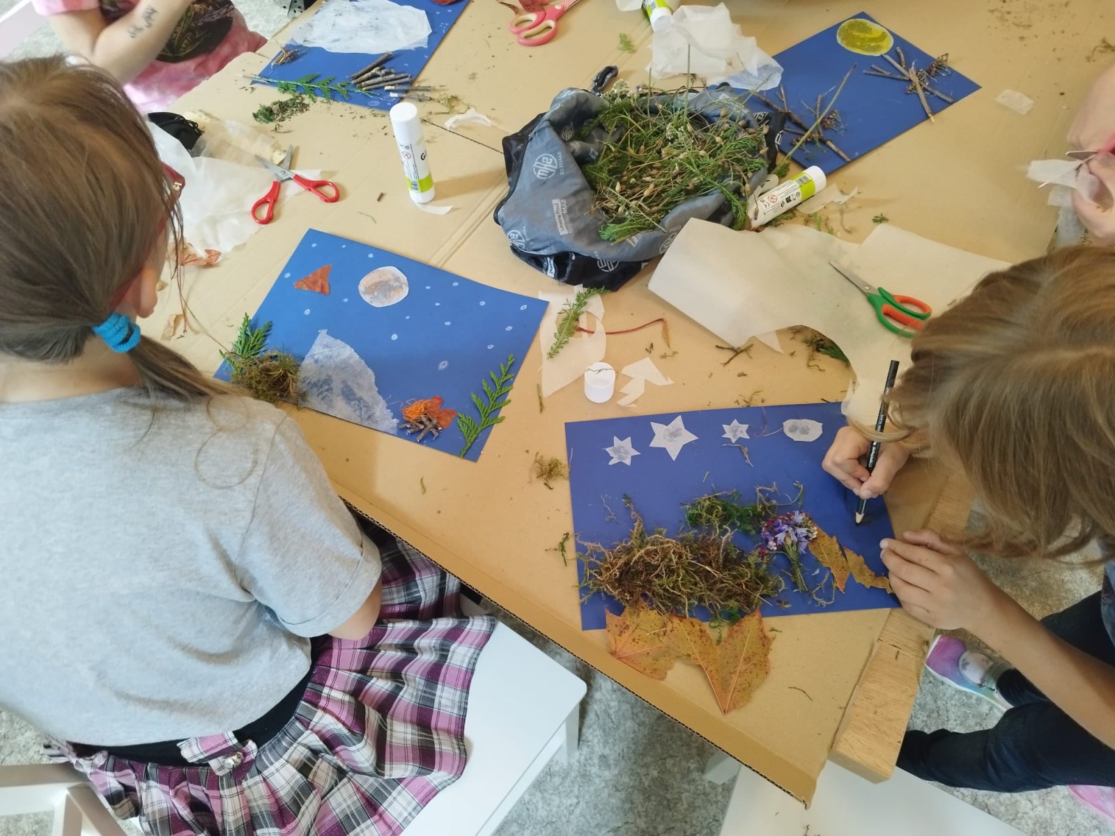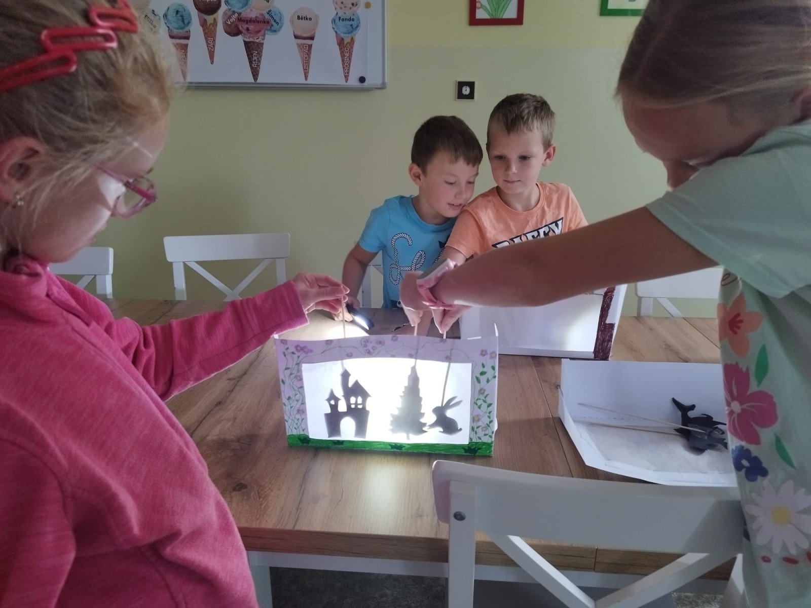 Ve výtvarném kroužku jsme podzim zahájili tvořením z přírodnin, kdy si děti vytvořily podzimní krajiny dle vlastní fantazie. V dalším setkání si vyrobily stínové divadlo a loutky.