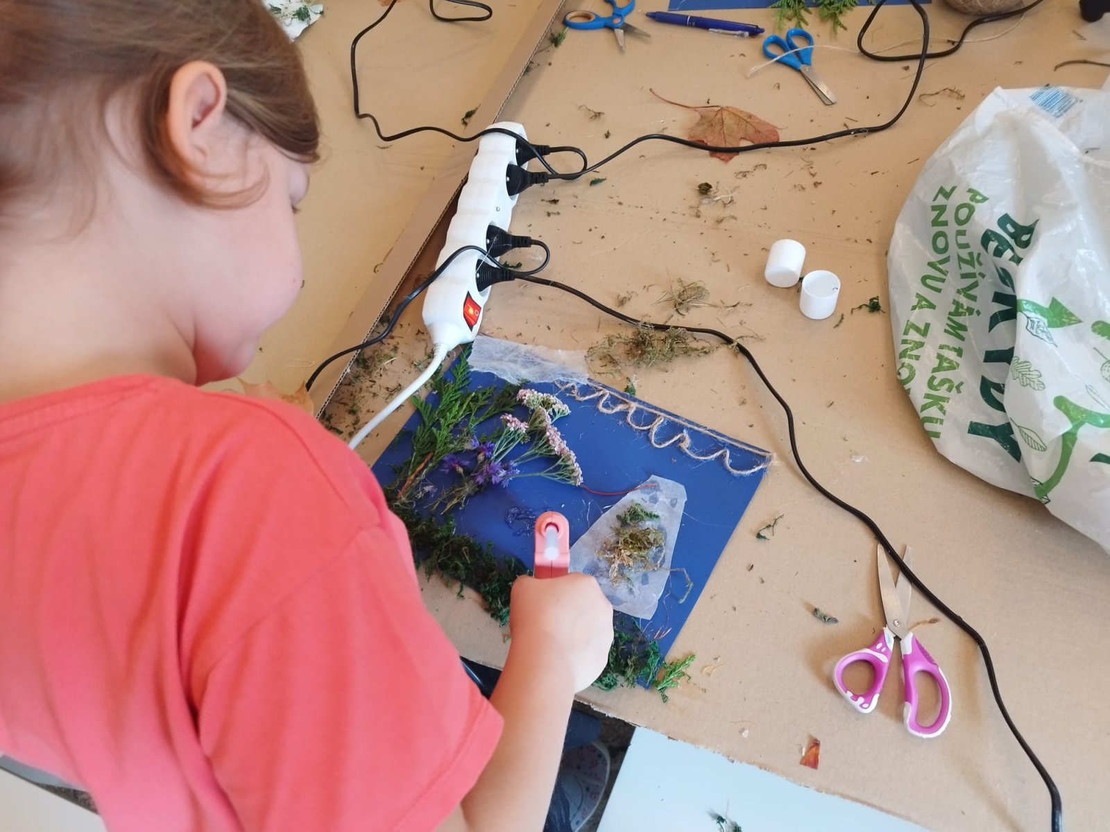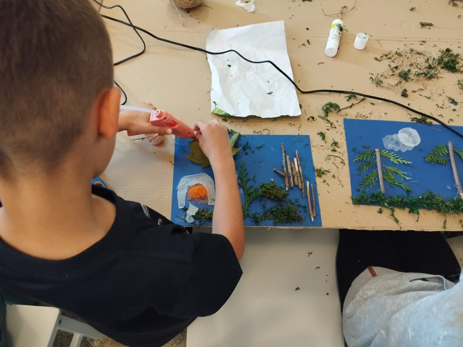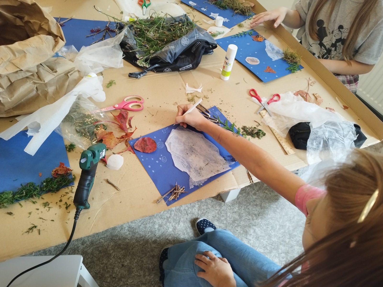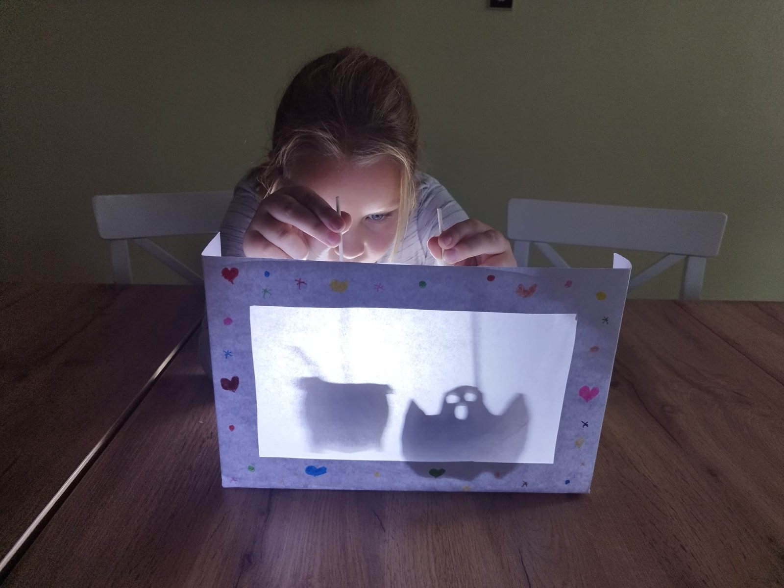 Ve výtvarném kroužku jsme podzim zahájili tvořením z přírodnin, kdy si děti vytvořily podzimní krajiny dle vlastní fantazie. V dalším setkání si vyrobily stínové divadlo a loutky.
