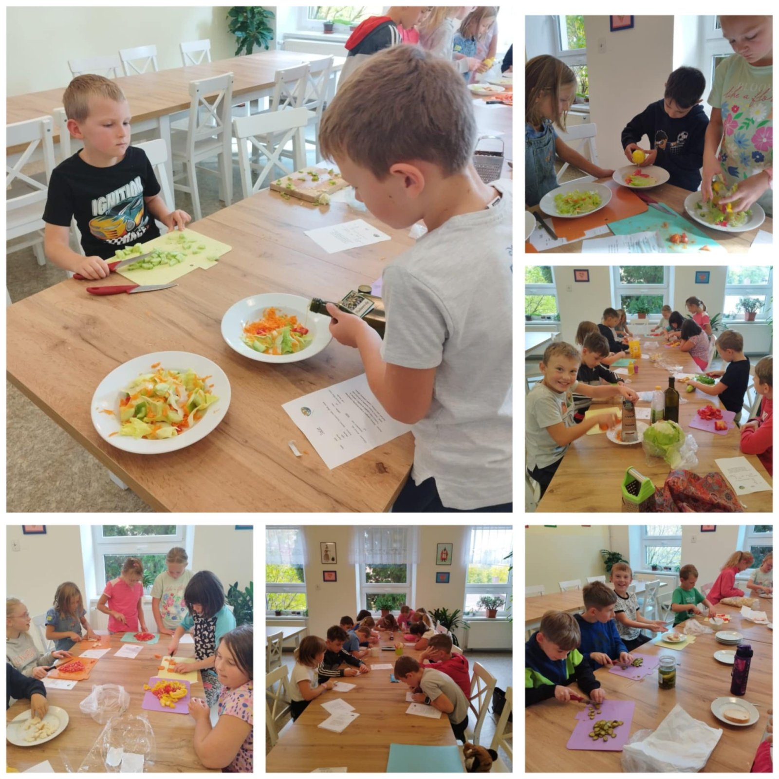 Každý týden se od října v naší škole schází malí kuchaři a kuchařky, kteří s nadšením objevují svět chutí a vůní. Kroužek vaření jsme zahájili sladce – voňavými meruňkovými šátečky, které se povedly na jedničku! Následoval zeleninový salát, při kterém si děti vyzkoušely, jak barevná a zdravá může být miska plná vitamínů.