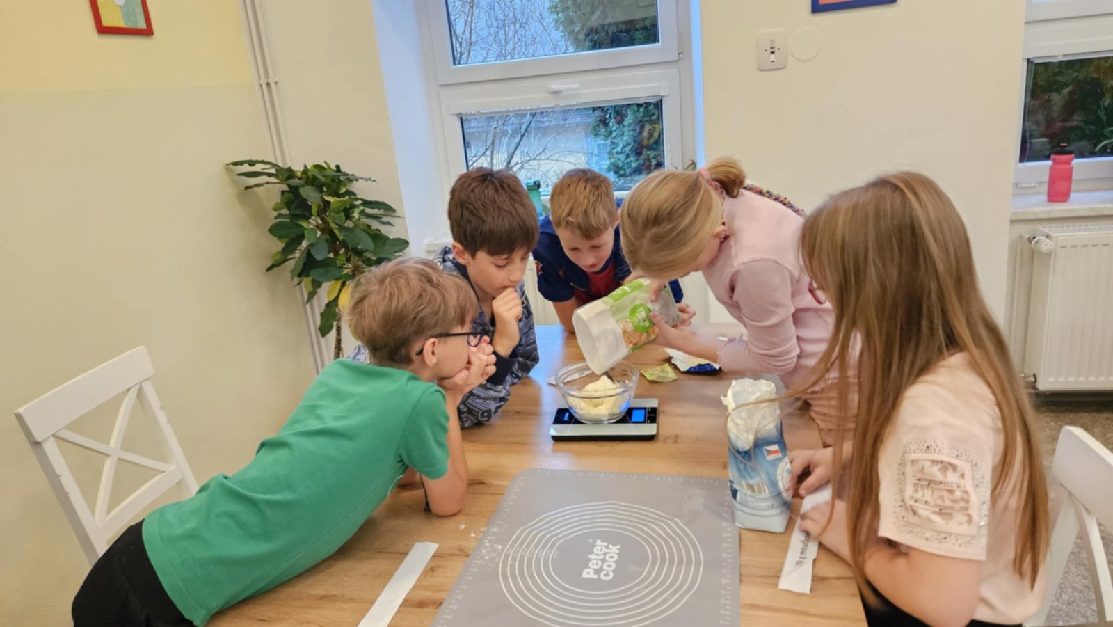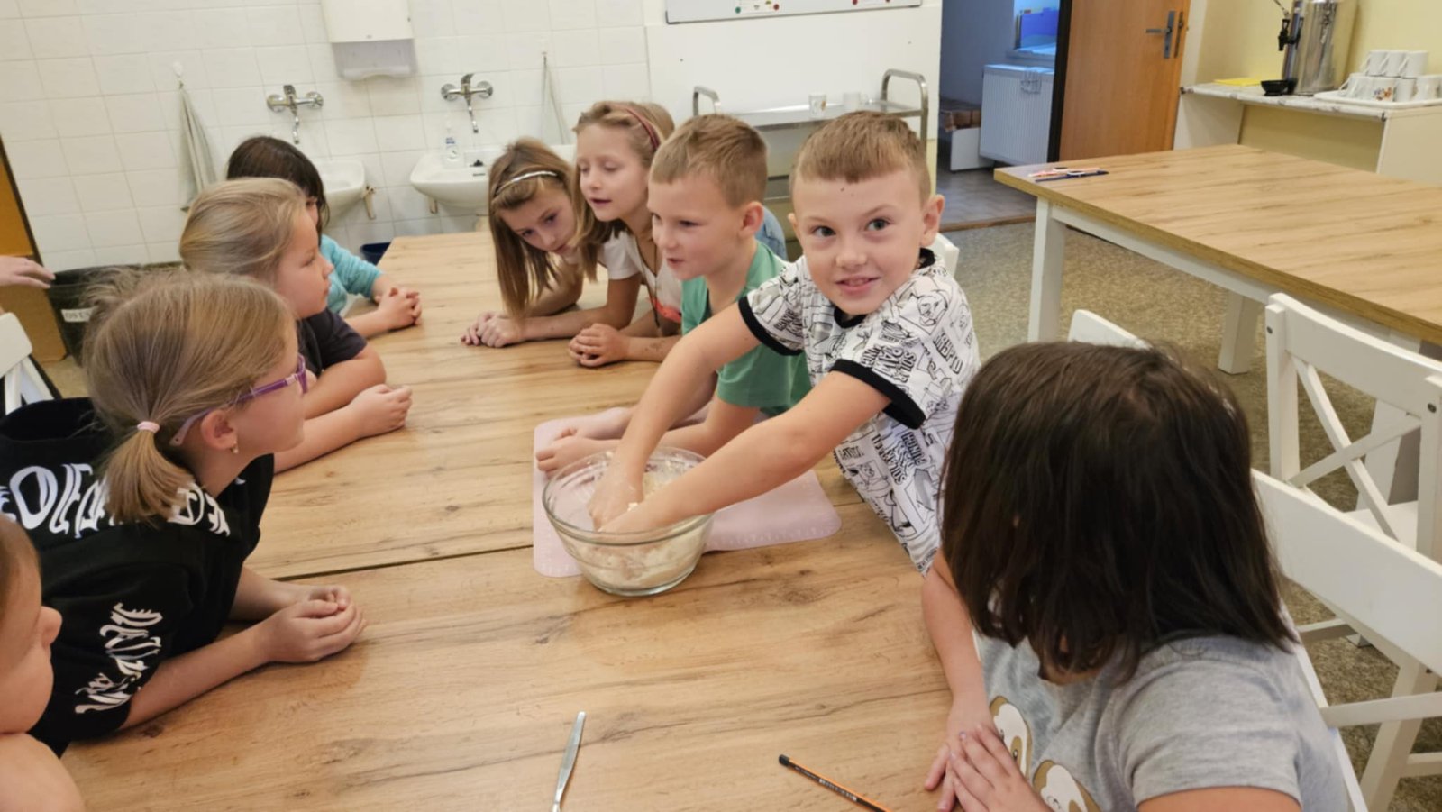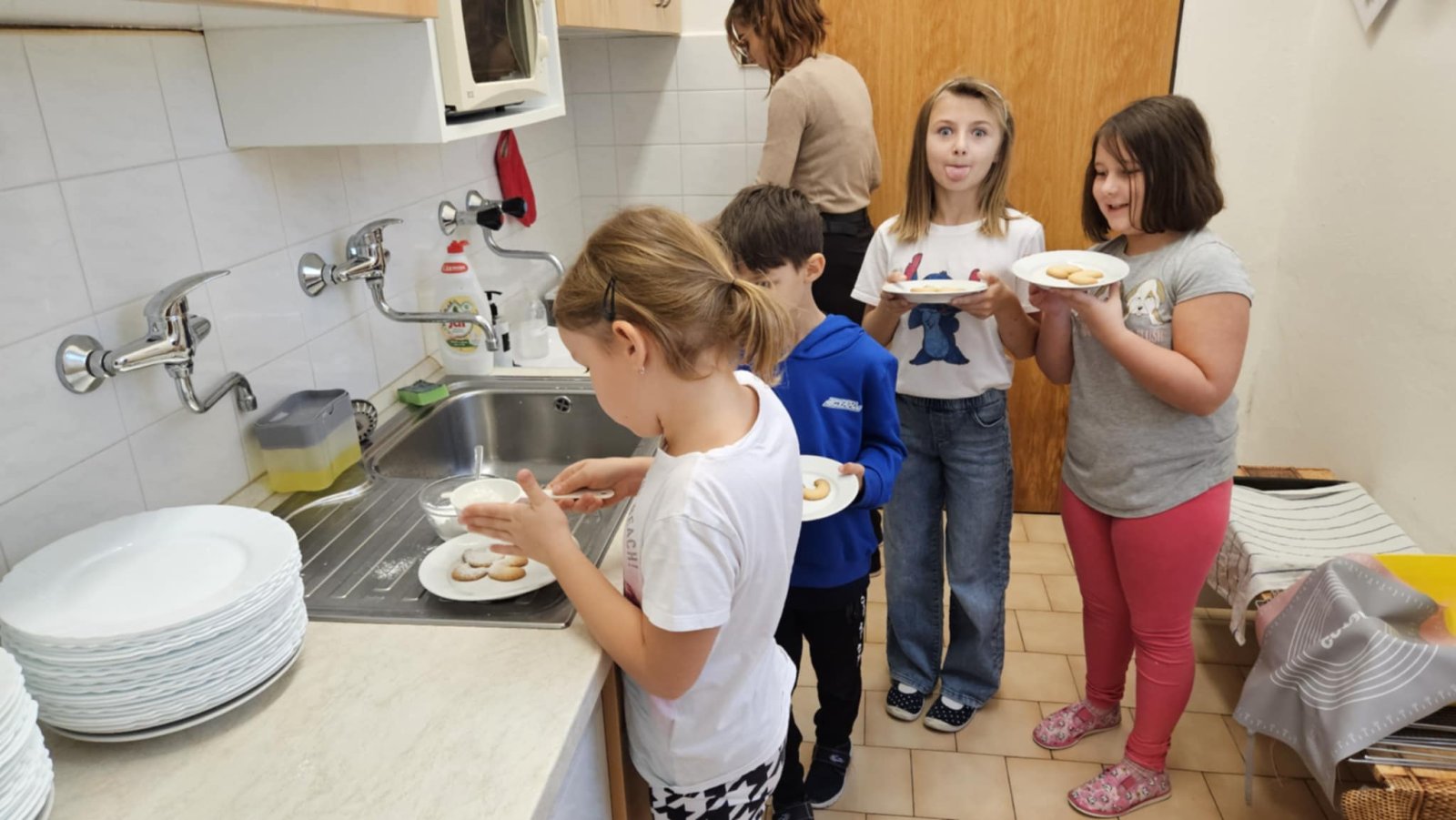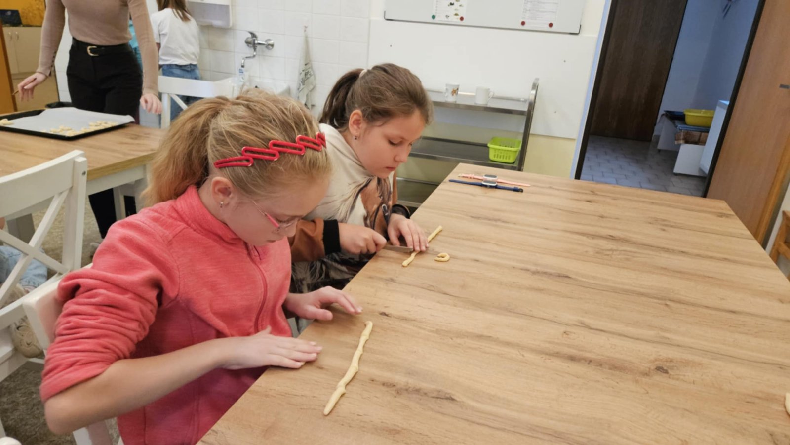 Včera jsme si s dětmi připomněli svátek svatého Martina. Nejprve si poslechly legendu o sv. Martinovi a dozvěděly se, kdo vlastně Martin byl a proč se pekly rohlíčky ve tvaru podkovy. Poté se pustily do pečení a provoněly školu vlastnoručně vyrobenými martinskými rohlíčky.