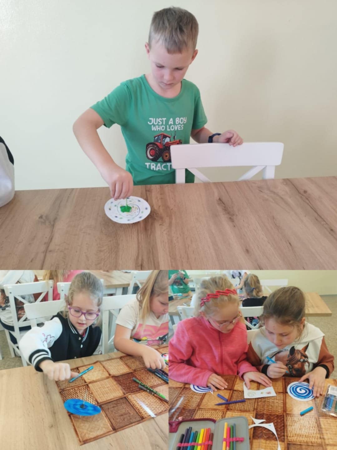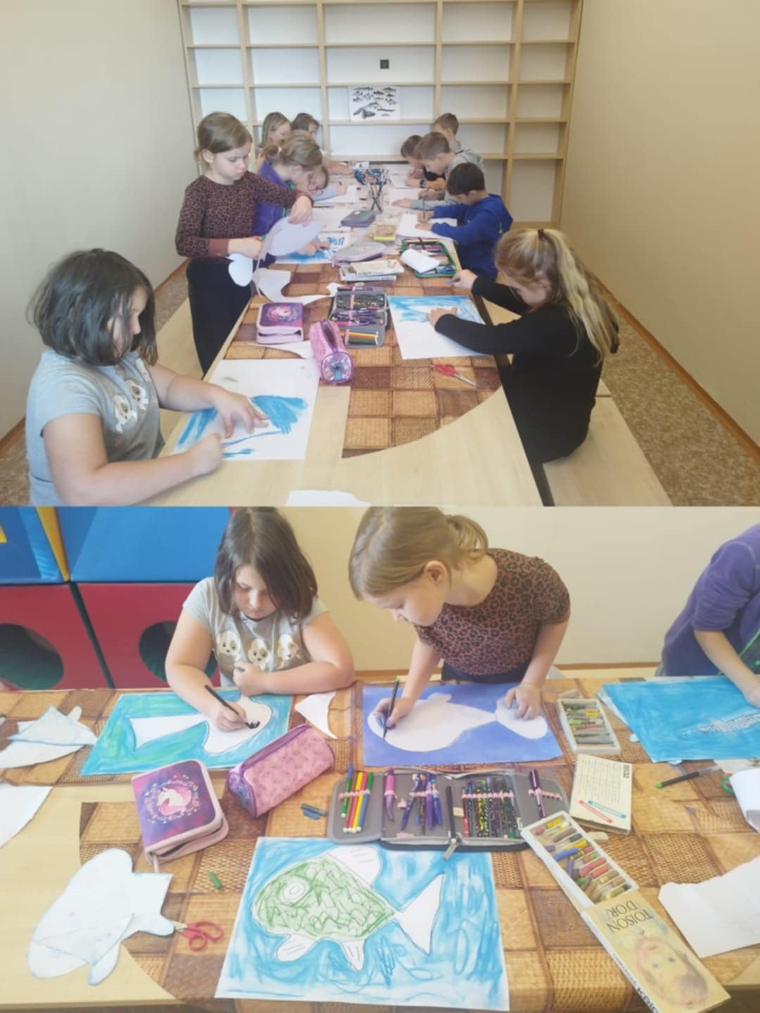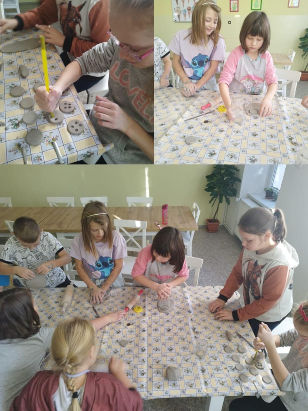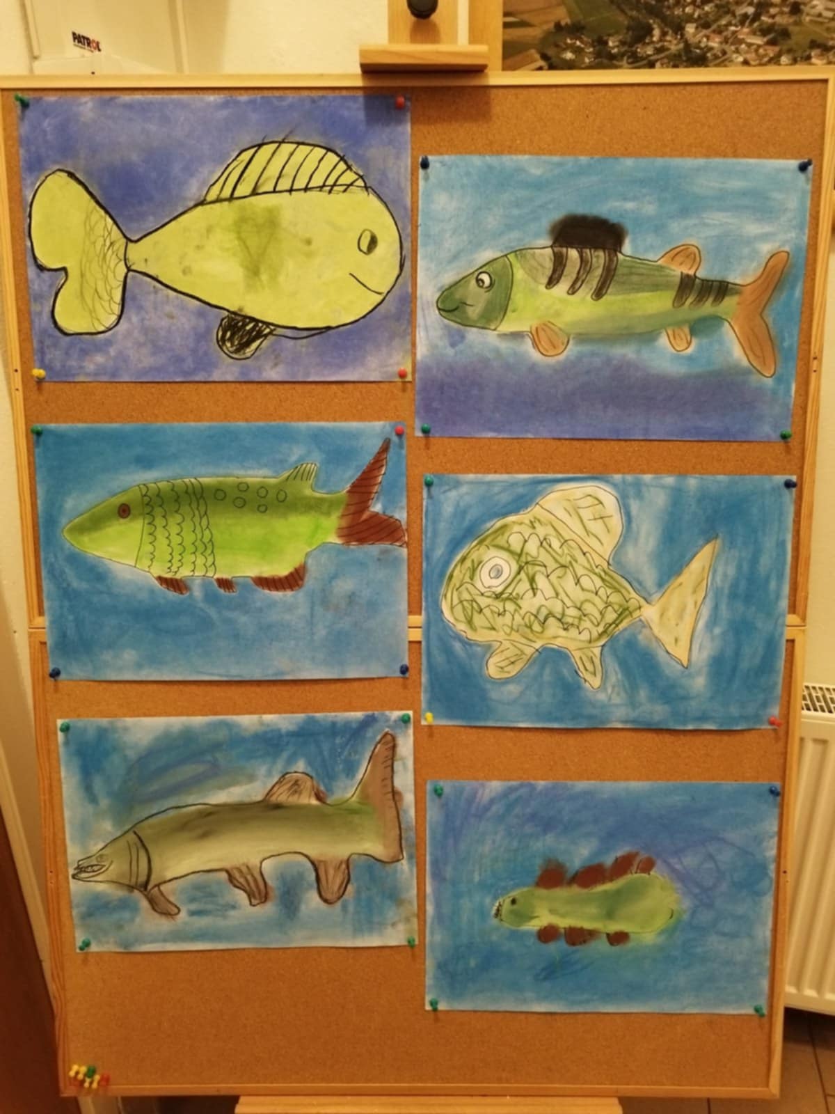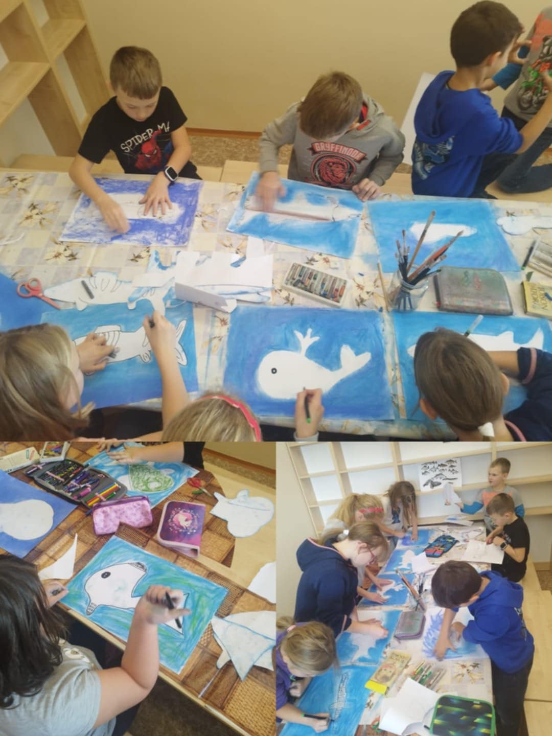 Ve výtvarném kroužku si děti vyrobily knoflíky z keramiky a složily vlastní káču. Inspirovaly se také výstavou o rybách a ty, které je nejvíce zaujaly, přenesly na papír. Práce dětí se velmi zdařily a z výtvorů měli všichni velkou radost.