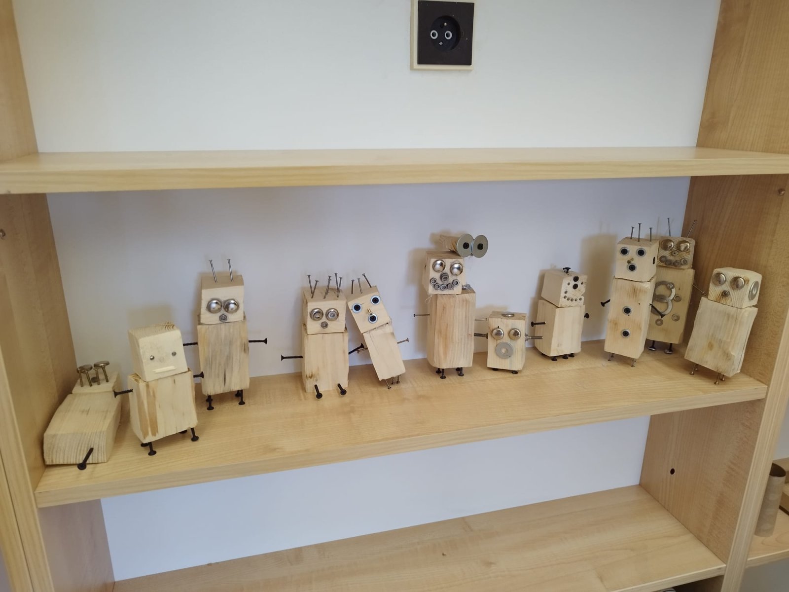 Starší děti z 3., 4. a 5. ročníku se zase v pracovních činnostech v rámci polytechnické výchovy pustily do výroby robotů ze dřeva. Každý si svůj robot navrhl a sestavil. Vznikly tak zajímavé a originální robotické postavičky.