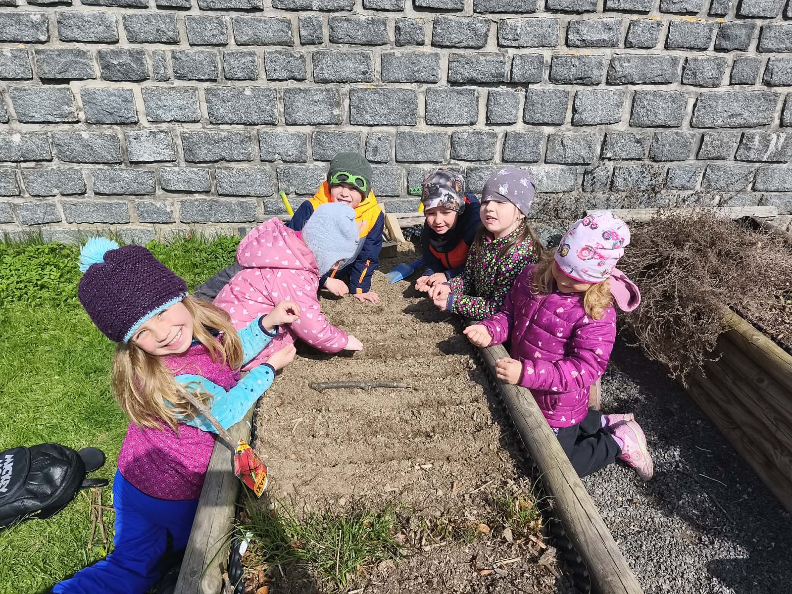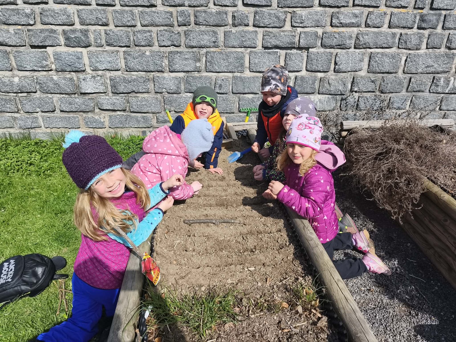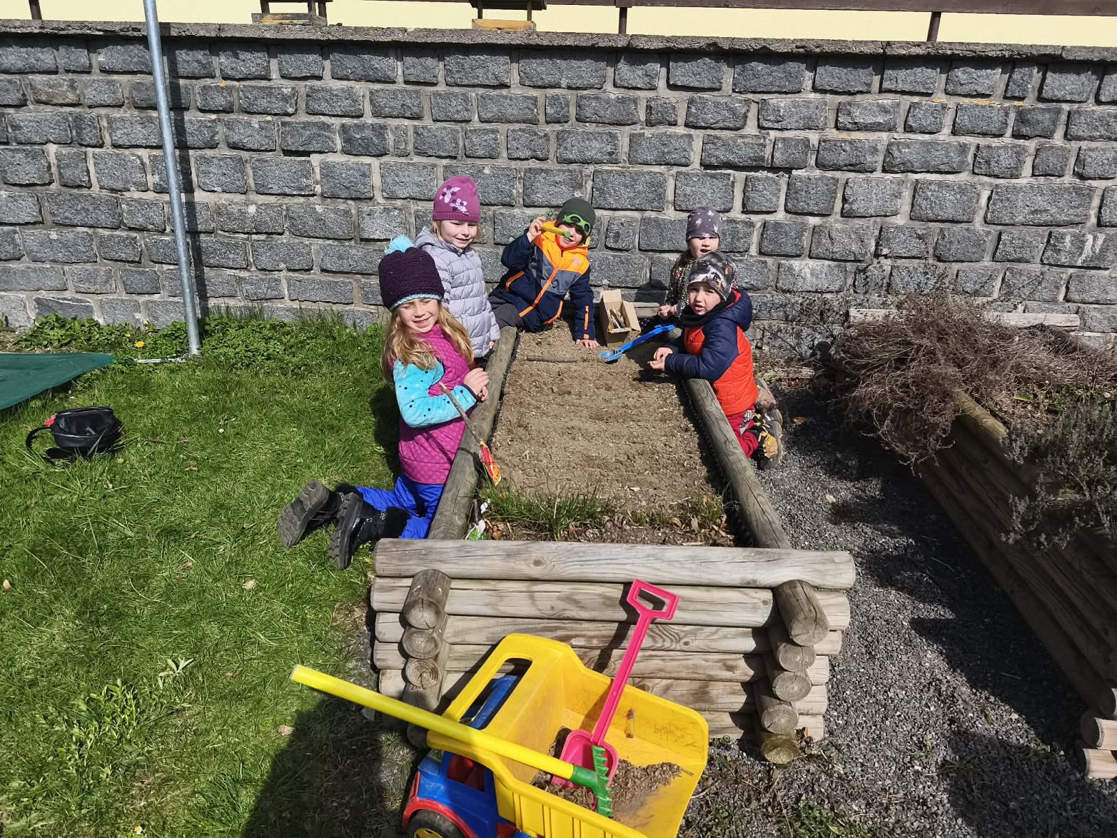 Hned, jak se trochu oteplilo, nelenili jsme a vypravili jsme se na naši školní zahradu. Tentokrát jsme si však nešli jenom hrát, ale potřebovali jsme připravit záhonky pro semínka a sazeničky. A šlo nám to pěkně od ruky!