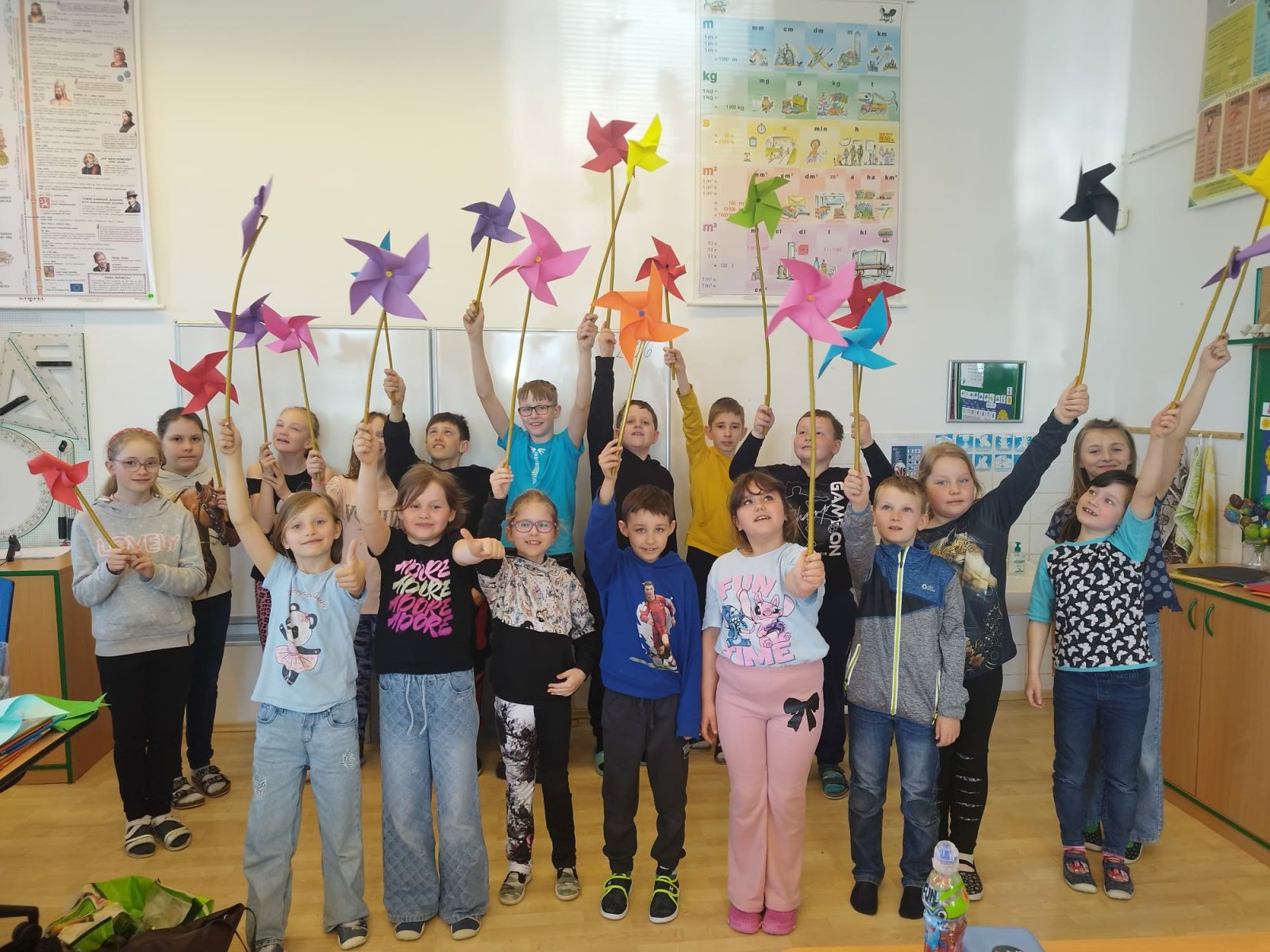 Duben přál větrnému počasí, a tak si děti po cestě domů své větrníky s radostí roztočily.